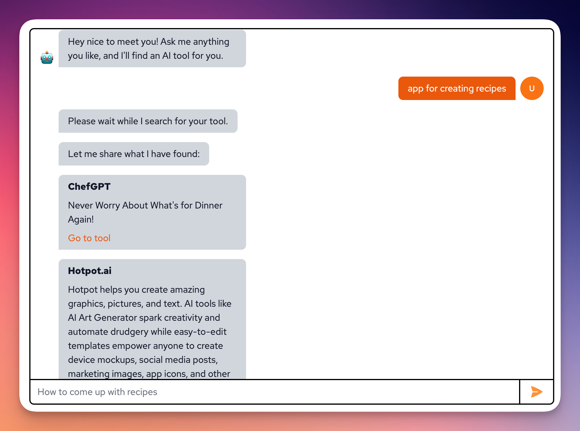 Igniter Chat is an AI chatbot for finding other AI tools. How meta!