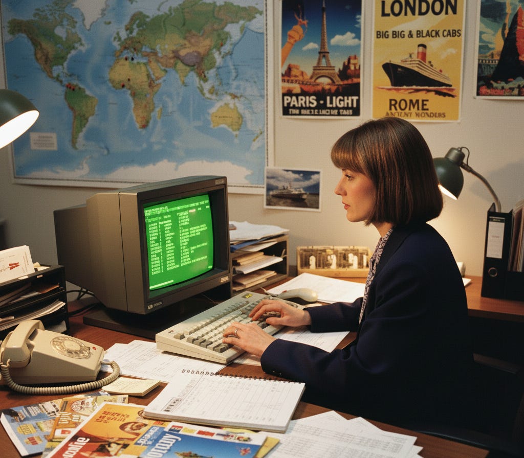 By the mid-1980s, 50,000 travel agents were using SABRE alone. The industry was thriving. Senior agents had carved out a clear value proposition: we don't just book travel, we understand travel.